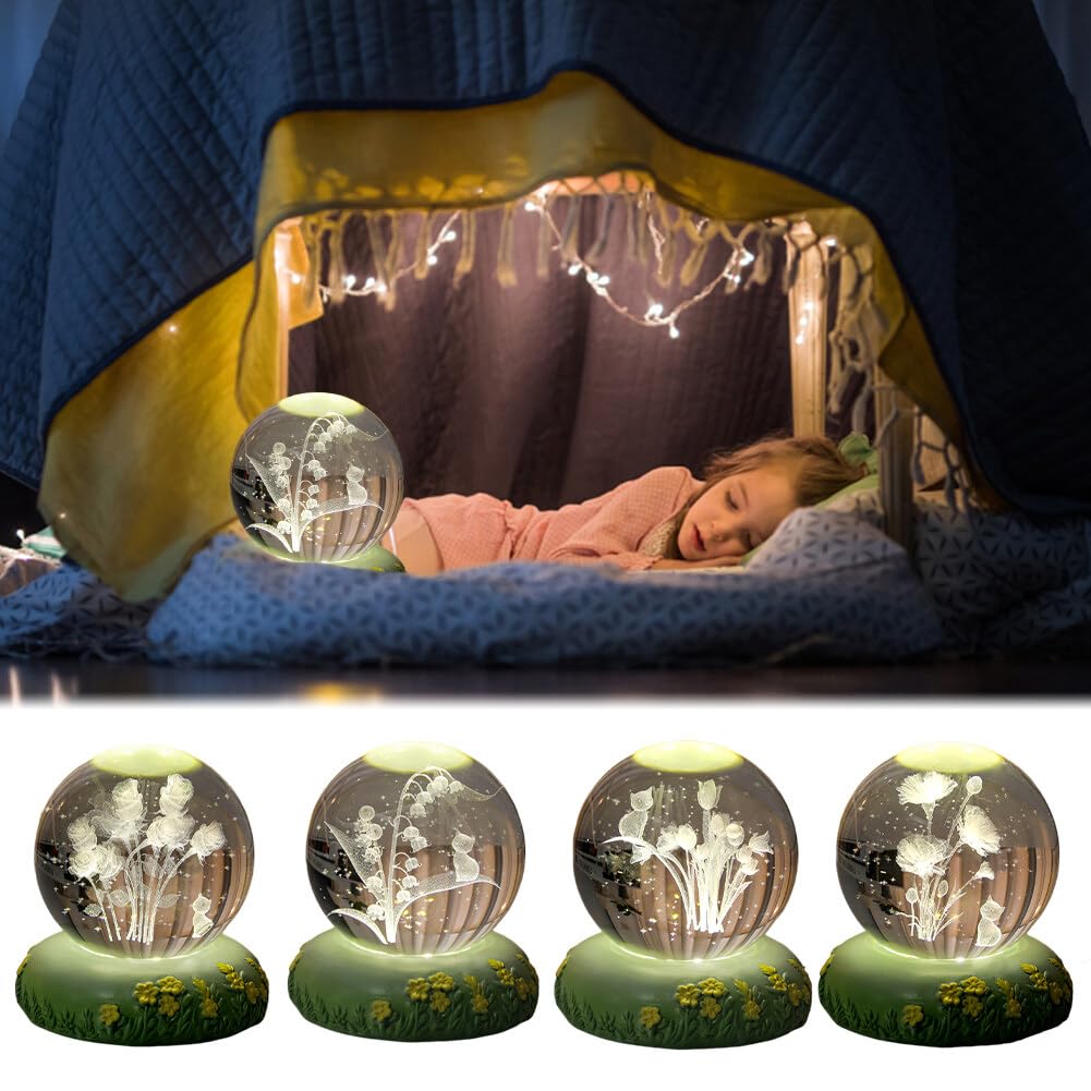 Illuminate your nights with the enchanting Moonlight Magic Night Light! This creative Carnation Crystal Ball Twilight Glowing Base Desktop Ornament stands at 6cm, making it a perfect bedside lamp for your nighttime adventures.