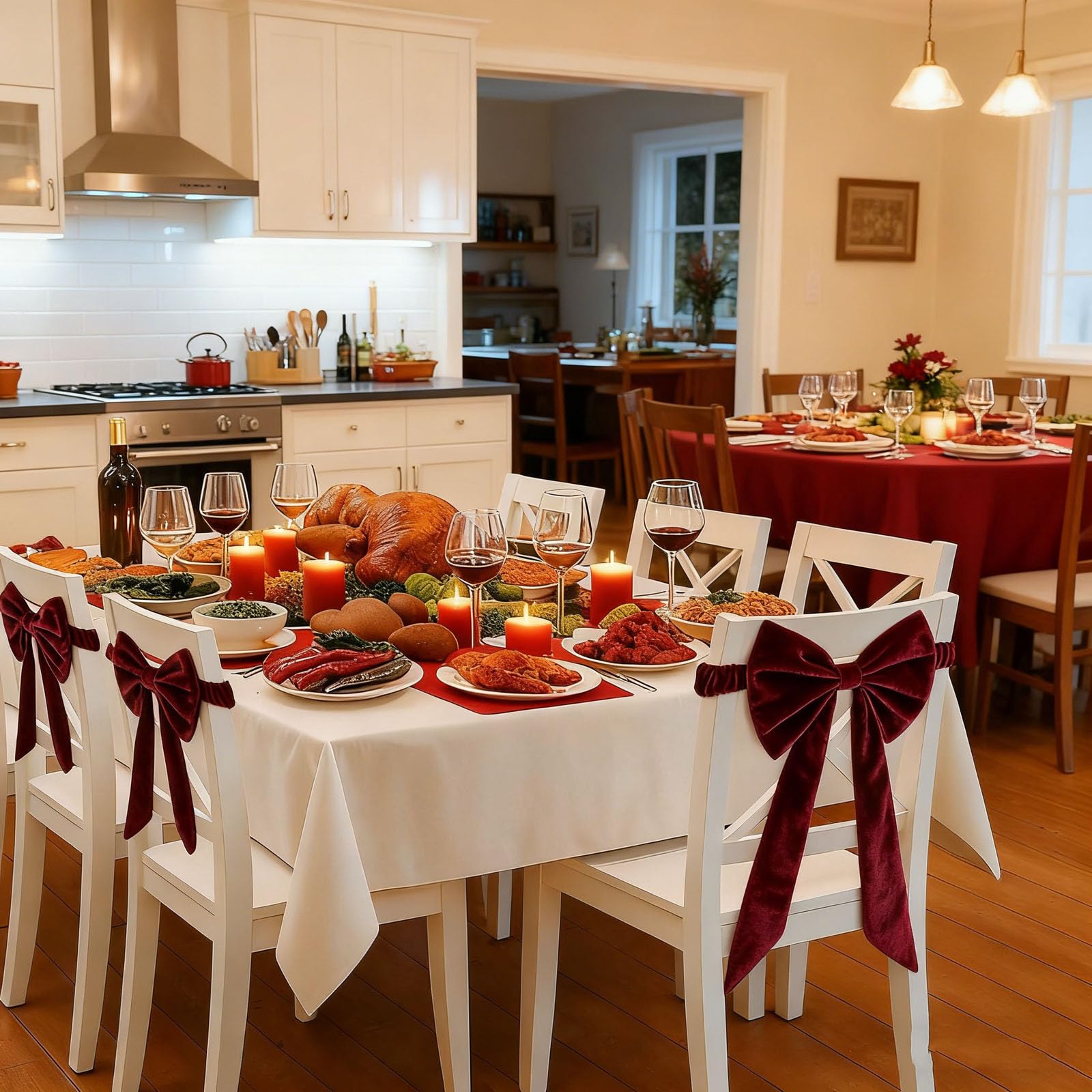 Whether you're preparing for a holiday dinner, a wedding reception, or a festive gathering, these Christmas Red Chair Bows for Chairs bring refined charm and luxurious style to any venue.