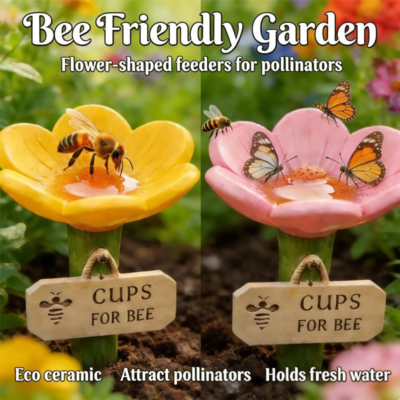 Creative Signage Design 🐝: Comes with a wooden "CUPS FOR BEE" sign and a cute bee pattern, full of fun, highlighting the function while adding a touch of tranquility to the garden—a romantic touch for gardening enthusiasts.