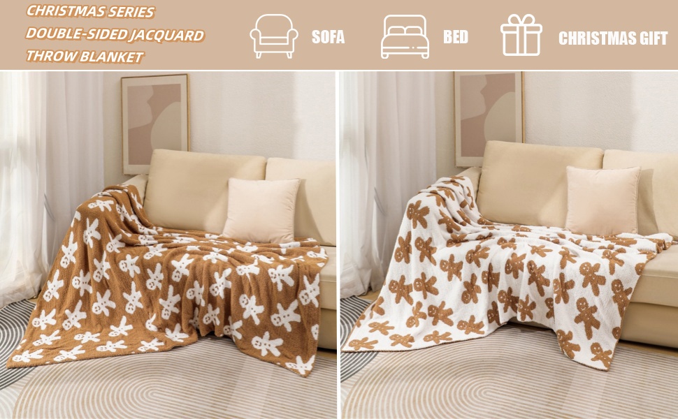 🧣 Warm Holiday Comfort: Wrap yourself in the cozy charm of our Christmas Knit Throw Blanket, featuring a beautifully woven double-sided jacquard design inspired by the classic gingerbread man series. Perfect for creating a festive and heartwarming atmosphere at home.