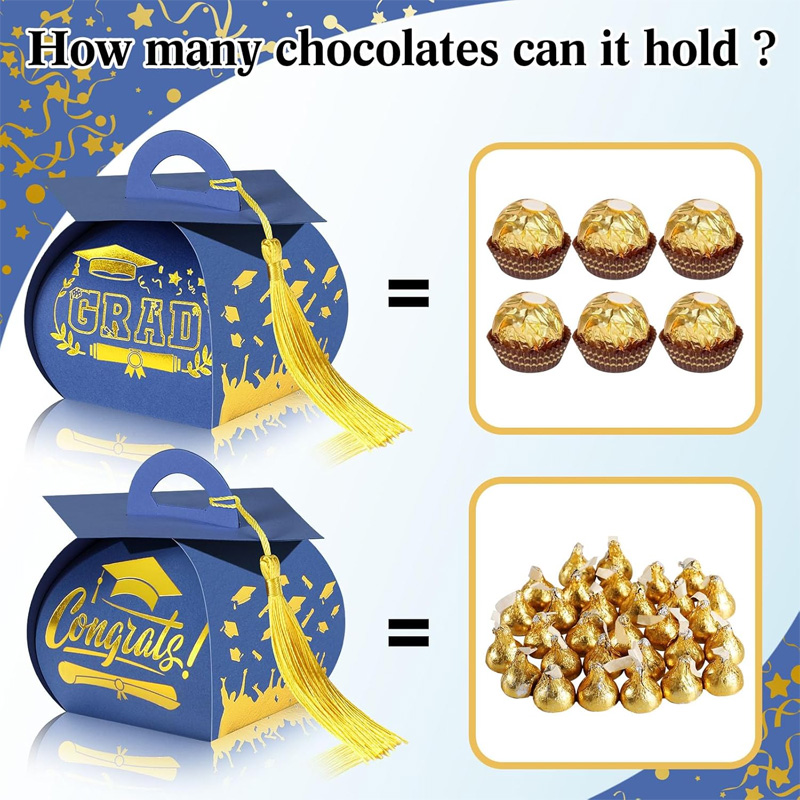 Still struggling to find a graduation gift that's both stylish and meaningful? This graduation cap-shaped candy box is the perfect choice! Navy blue with gold foil accents, a cap tassel, and openwork details perfectly blend "solemnity" and "youthfulness," making it suitable for graduation ceremonies, teacher appreciation banquets, and graduation parties. Fill it with candy or small gifts to instantly transform it into a heartwarming gift, adding more weight to your graduation memories. 🎁