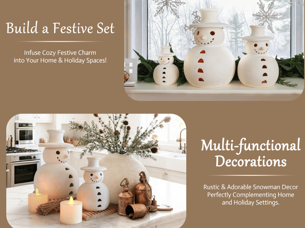 ❄️Handmade Terracotta Snowman Figurines: Rustic Christmas Warmth