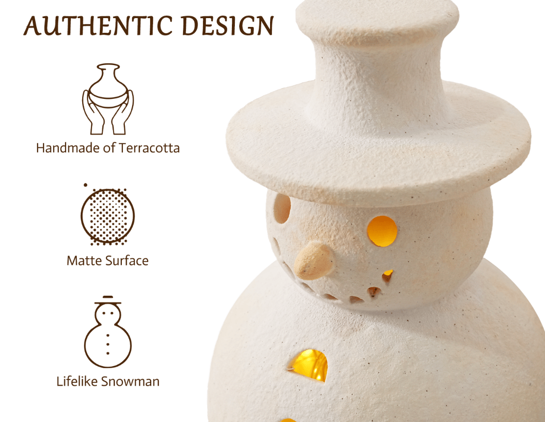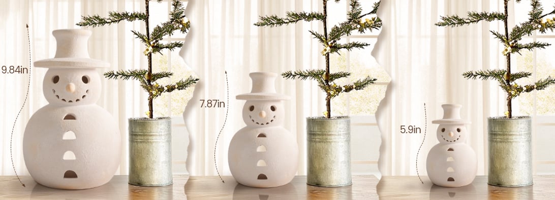 Made of premium terracotta, 100% handmade with tiny details: stitched scarves, smiling faces, matte texture. Each snowman is unique, full of rustic charm.