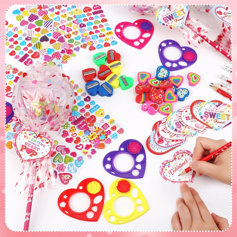 Adorable Stationery: Includes a Valentine's Day themed colored pencil, eraser, backpack charm, etc., making learning more fun! ✏️📚